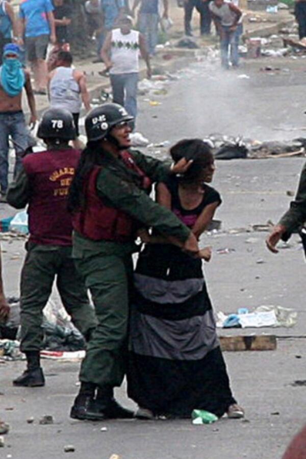 ...esta imagen antecede a la publicada màs abajo; observen que es la misma Guardia Nacional "mujer" y como se burla, deleita y rie por su actuación la muy cobarde !!!